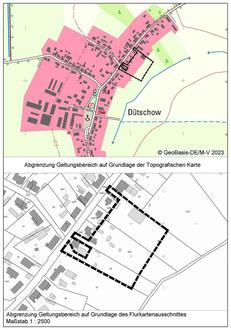 Im Nordosten der Ortslage Dütschow wird ein Allgemeines Wohngebiet gemäß § 4 BauNVO für eine bauliche Entwicklung festgesetzt. Der Geltungsbereich ist dem Übersichtsplan zu entnehmen.