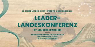 Unter dem Motto „30 Jahre LEADER in MV – Europa ganz regional!“ laden die 14 LEADER-Regionen aus MV zur großer LEADER-Landeskonferenz alle engagierten Akteurinnen und Akteure herzlich nach Parchim ein.