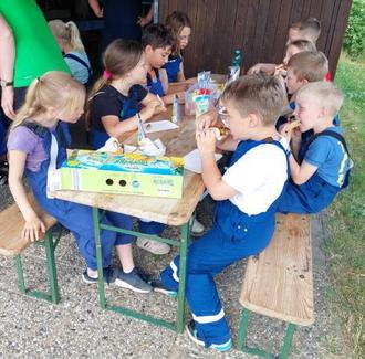 Nach Rückkehr zum Standort wurde die Einsatzbereitschaft wiederhergestellt (Schläuche tauschen, Gerätschaften prüfen) und sich reichlich mit Getränken, Obst und Gemüse gestärkt.