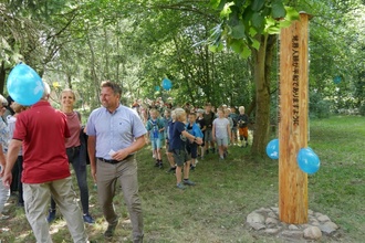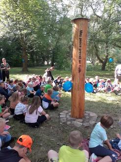 Im Rahmen eines Schulprojektes zur Olympiade in Paris wurde nun der Pfahl eingeweiht, denn nur im Frieden sind sportliche Wettkämpfe, sind Verständigung und gemeinsames Handeln möglich.