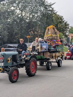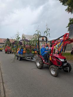 Los ging's mit einem Festumzug durch den festlich geschmückten Ort, vorbei an vielen liebevoll dekorierten Vorgärten. Die Beteiligung der Fahrzeuge war zahlreich und vielseitig.