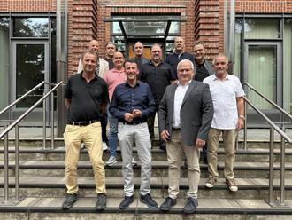 Reihe 1 von l nach r: Dr. Peter Strauer, Lars Zacher, Berthold Riech, Hans-Georg Kleinschmidt Reihe 2 von l nach r: Hans-Werner Moltzen (Vertretung für Robert Haß), Alexander Kraak, Jörg Griese, Jörn Rachowe Reihe 3 von l nach r: Dr. Dirk Tardel, Andreas Pieper, Renee, Recke Es fehlt ohne Vertretung: keiner