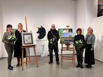„Kunst wäscht den Staub des Alltags von unserer Seele“, sagte einmal Pablo Picasso. In diesem Jahr war es auch das Motto der vierten Laienkunstausstellung des Landkreises Rostock mit der Barlachstadt Güstrow. Die Ausstellung in der Wollhalle endete am 5. Januar mit einer Finissage - ganz staubfrei und mit musikalischer Begleitung von Rike Döring. Auch die drei beliebtesten Werke wurden gekürt und von Anja Kerl, Zweite Stellvertreterin des Landrates, und Cornelia Rosentreter, 1. Stadträtin der Barlachstadt Güstrow verliehen. Wie auch in den vergangenen Jahren konnten die Kunstwerke nicht nur bestaunt, sondern auch gewählt werden - insgesamt 122 Exponate standen den 2.280 Besucherinnen und Besucher zur Auswahl. Mit dabei waren Werke aus den Bereichen Malerei, Grafik, Plastik, Fotografie, Modellbau, Origami und Collagen.