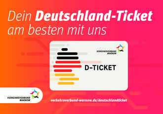 Mit nur einem Ticket bequem in ganz Deutschland unterwegs - das ermöglicht Ihnen das Deutschland-Ticket (D-Ticket) des Verkehrsverbundes Warnow (VVW). Seit dem 1. Mai 2023 können Fahrgäste für nur 49 Euro im Monat bundesweit alle Verkehrsmittel des ÖPNV nutzen.