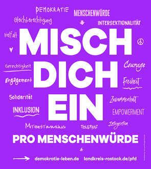 Bereits das dritte Jahr in Folge beteiligte sich die Partnerschaft für Demokratie Landkreis Rostock mit Aktionen an den Internationalen Wochen gegen Rassismus. Diese fanden in diesem Jahr unter dem Motto „Misch dich ein“ vom 20. März bis 2. April statt. Gemeinsam mit neun Kommunen im Landkreis hat die Partnerschaft mit Bodenaufklebern ein Zeichen für Vielfalt und gegen Rassismus gesetzt. Beteiligt haben sich die Städte Teterow und Laage, die Gemeinde Satow sowie die Ämter Neubukow-Salzhaff, Rostocker Heide, Bad Doberan-Land, Warnow-West, Carbäk sowie Güstrow-Land.