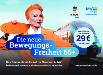 Nach dem erfolgreichen Start des Deutschland-Tickets zum 1. Mai, ermöglicht das Land Mecklenburg-Vorpommern nun ein ermäßigtes Ticket für Seniorinnen und Senioren über 65 Jahren mit Wohnsitz in Mecklenburg-Vorpommern. Statt der 49 Euro zahlen alle Antragsberechtigten für das vergünstigte Deutschland-Ticket in MV nur 29 Euro – 20 Euro übernimmt das Land M-V. Das Ticket ist bereits zum 1. August gestartet und kann bei Interesse entsprechend beantragt werden.