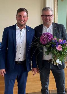Landrat Sebastian Constien und Kreistagspräsident Veikko Hackendahl