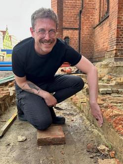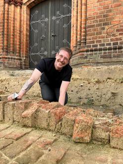 „Baudenkmalpfleger schauen nach oben. Unser Blick hingegen richtet sich nach unten“, sagt Patrick du Mont. Er ist Bodendenkmalpfleger und auf der Baustelle rund um die Güstrower Pfarrkirche voll in seinem Element. „Es hat nicht lange gedauert, bis hier beim Graben die ersten Skelette freigelegt wurden. Der Friedhof rund um die Kirche wurde noch bis Mitte des 18. Jahrhunderts genutzt“, berichtet er. „Aber nicht nur das. Die Kirche hatte früher zwei Seitenschiffe mehr, die zwischen 1880 und 1883 abgerissen wurden. Wir haben auf der Nordseite alte Grüfte gefunden, die vor den Abrissarbeiten noch innerhalb der Kirche waren.“