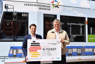 Die IHK zu Rostock hat sich bereits kurz nach Einführung für das Deutschland-Ticket Job entschieden. VVW-Chef Stefan Wiedmer (l.) und IHK-Präsident Klaus-Jürgen Strupp sind vom Konzept überzeugt.