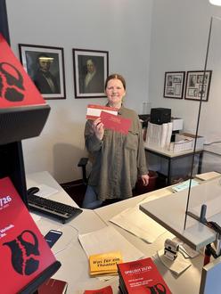 In der Theaterkasse berät Sylke Kallweit die Besucherinnen und Besucher.