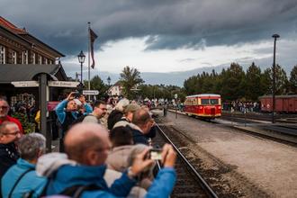 Zahlreiche Schaulustige zur Lhighqparade im Bahnhof Kühlungsborn