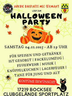 Am 04. November wird der alte Sportplatz in Bocksee zum Schauplatz der großen Halloweenparty, die ab 19 Uhr Jung und Alt gleichermaßen in ihren Bann ziehen wird.