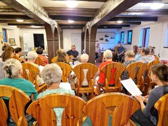Die erste Station war Lapitz. Mit kleinen Snacks und Getränken sowie diversen Instrumenten bestückt, traf sich der Chor im Saal des Schlosses. Neben bekannten Volksliedern wurden auch Scherz- und Kinderlieder gesungen. Bereits eine Woche später traf sich der Chor im Dorfgemeinschaftshaus Alt Rehse. Einige interessierte Frauen kamen vorbei und stimmten direkt mit ein. Unterstützt wurde der Chor an diesem Abend durch Reinhard Gust, der die Probe in Vertretung für Chorleiterin Brita Möller leitete. Weitere Orte innerhalb des Amtsbereichs sollen im nächsten Jahr für öffentliche Proben genutzt werden. Falls Sie oder Ihre Gemeinde Interesse haben, melden Sie sich direkt beim Frauenchor Penzlin unter 0162 - 9217781 oder info@frauenchorpenzlin.de.