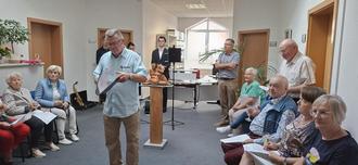 Nach kurzer musikalischer Einleitung durch Mitglieder der Familie Lucht, begrüßte der Vorsitzende unserer Seniorengruppe Hartmut Kindermann als Gäste den Bürgermeister Sven Flechner, Marianne Ritter, die Tochter des ersten Mitstreiters Walter Teets, sowie Jutta Jenewski als Vertretung der Volkssolidarität.