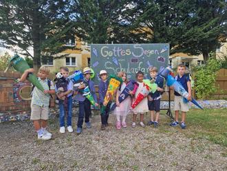 Am 02. September war das große Erlebnis für die neuen Erstklässler die Einschulungsfeier. 8 Kinder gehören nun zur Johannesschule. Die Schultüten waren alle sehr schön und ganz unterschiedlich beklebt und bemalt und natürlich gut befüllt.