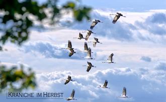 Das zweite Siegertreppchen ging an Bernd Schachler mit seinem Foto „Kraniche im Herbst“. Sage und schreibe fünfzehn Kraniche - die Glücksboten der chinesischen Mythologie - flogen Herrn Schachler vor seine Linse und verhalfen zu diesem nach Freiheit klingenden Bild, welches die Jury von erster Stunde an faszinierte.