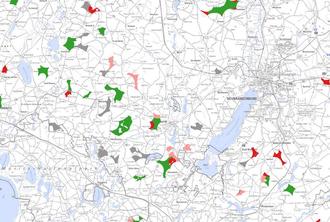 Grün: aktuell ausgewiesene Flächen zur Erreichung 1,4 % Zieles