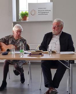 Abwechselnd lasen sie uns dann Plattdeutsche Geschichten von Wolfgang Manke und Rudolf Tornow vor. Zwischendurch spielte Marianne auf ihrer Gitarre und sang dazu.