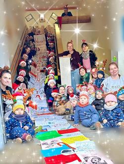 Fleißig wurden Wunschzettel gemalt, gebastelt und geschrieben. Damit auch alle Wünsche beim Weihnachtsmann ankommen, wurden diese bunt aneinandergereiht auf die längste Weihnachtsmannwunschliste aufgeklebt.