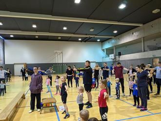 Am Freitag den 20. Januar 2023 fand unser Familiensportfest in Kooperation mit dem Sportverein Vfb Penzlin statt. Unsere Kindergartenkinder kamen mit ihren Eltern, Großeltern und Geschwistern zu unserem Sportfest in die Sporthalle in der Neuen Burg. Unter Leitung von Herrn Neuendorf bereiteten viele fleißige Mitglieder des Sportvereins diesen sportlichen Höhepunkt vor. Zu Beginn erwärmten sich alle mit einigen Übungen. Danach ging es zu den einzelnen aufgebauten Stationen. Gemeinsam mit ihren Familien zeigten die Jungen und Mädchen ihr Geschick und hatten sichtlich viel Spaß dabei. Jedes Kind bekam einen „Laufzettel“, der nach absolvierter Übung an der Station ausgemalt wurde. Sogar die Kleinsten konnten sich bei einem kleinen Parcours ausprobieren. Danach hieß es „Feuer, Wasser, Sturm“, dieses allzeit beliebte Reaktionsspiel verlangte noch einmal die Konzentration, Ausdauer und Reaktion der Kinder. Erschöpft, aber stolz zeigten die kleinen Sportler ihren ausgemalten „Laufzettel“ vor und erhielten ihre Urkunde und einen Sportlerbutton. Das Familiensportfest war ein sehr gelungener Höhepunkt zu Beginn des Jahres, an den sich noch viele interessante Veranstaltungen und Aktionen anschließen werden. Wir danken allen für die Teilnahme und ganz besonderer Dank gilt den Helfern, die das Sportfest organisiert haben.