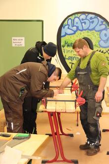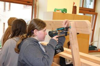 In der letzten Schulwoche vor den Winterferien kam die 9. Klasse in Arbeitskleidung zur Schule. Es wurde gesägt, gebohrt und geschliffen. In Teams wurden Bänke für unseren Schulhof gebaut und gestaltet. Finanziert wurde das Projekt durch die Jost Reinhold Stiftung.