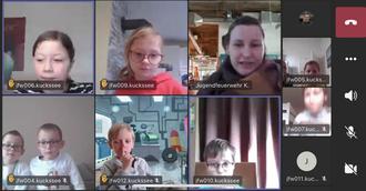 Nach anfänglichen technischen Schwierigkeiten funktionieren die Gruppenstunden nahezu reibungslos. So wurden die Themen „Erste Hilfe“ und „Wo finde ich überall Wasser zum Löschen“ behandelt. Nach den Gruppenstunden können die Kinder sich auf der Plattform weiter austauschen und Fragen stellen. Und auch ein erstes Quiz zu den Grundlagen der Jugendfeuerwehr mussten die Kinder bereits absolvieren.