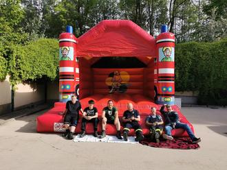 Bei der Ankunft auf dem Spielplatz der Kita erwartete alle eine Überraschung. Das Spiele-Mobil der "Freiwilligen Ortsfeuerwehr Penzlin" mit vielen Attraktionen, wie z. B. einer großen Feuerwehr Hüpfburg. Durch die Firma „Elektrotechnik Draewe“ aus Penzlin wurde es für diesen Tag gesponsert.