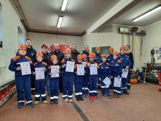 12 Kinder und Jugendliche wollten an diesem Tag ihre Prüfung für die Kinderflamme 1, Jugendflamme 1 bzw. Jugendflamme 2 ablegen. Dafür mussten die Jüngsten (6-10 Jahre) ihre Kenntnisse aus der Brandschutzerziehung und der Ersten Hilfe präsentieren, z. B. einen Verband anlegen.