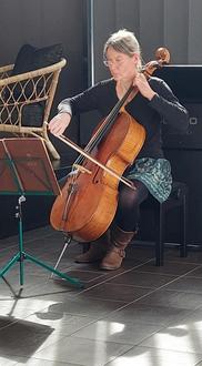 Cornelia Börngen umrahmte die Vernissage am Cello.