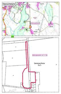 Das Plangebiet hat eine Größe von rund 2,1 ha (vgl. Anlage mit Kartendarstellung) und umfasst Teilflächen folgender Flurstücke der Gemarkung Werder, Flur 3: 64, 65, 66,68 und 70/5.