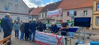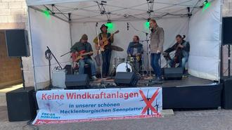 Am Freitag, den 23. Mai fand das 1. Weitblick Open Air in Penzlin auf dem Marktplatz statt, welches die Bürgerinitiative „ Gegenwind Penzliner Land“ organisiert hat. Viele Interessierte fanden sich am Infostand ein. Da gab es unter anderem Modelle, einen Vorher-Nachher-Film, informative Flyer und die mit Stecknadeln (Windkraftanlagen symbolisierend) gespickte Landkarte. Bürgermeister Sven Flechner und Andrea Schumacher von der Bürgerinitiative hielten bewegenden Ansprachen. Anschließend eröffneten die Musiker und Norbert Schumacher das Konzert mit dem Antiwindkraftlied. Henry Bauer und Helmut Lexow begeisterten danach mit ihrer Musik auch auf Platt das Publikum. Später reihten sich Torsten Harder, Mark Rose, Rudi Feuerbach und Henri Stabel mit ein und rockten ordentlich die Bühne. Zum Ende des gelungenen Konzerts schwangen noch viele das Tanzbein.