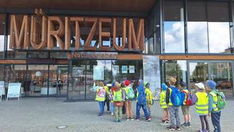 Der Besuch des Müritzeum`s in Waren war ein weiterer Höhepunkt für unsere „Großen“. Mit dem Bus und Rucksäcken gepackt mit vielen Leckereien ging es auf die Reise. Eine große Vielfalt an Tieren und Pflanzen lud zum Entdecken ein. Der Spielplatz bot Gelegenheit zum Austoben, leider verging die Zeit viel zu schnell. Am 21. Juli 2025 fuhren alle Kindergartengruppen zur Hintersten Mühle nach Neubrandenburg. Trotz schlechter Wetteraussichten ließen wir uns die Vorfreude nicht verderben. Die Kinder hatten sehr viel Freude und Spaß auf dem Gelände, alle Spielgeräte wurden ausprobiert, mit den tollen Fahrzeugen sausten die Kinder über den Platz und bei der Tiersafari konnten die Kinder verschiedene Tiere anschauen, wer sich traute auch füttern oder streicheln. Beim Mittagspicknick stärkten sich die Kinder, bevor es noch einmal auf den Spielplatz ging und danach dann auch schon wieder der Bus für den Heimweg bereitstand. In den Sommerwochen wird es dann noch einmal so richtig bunt, denn wir erkunden die Welt der Farben, Experimente, Erlebnisse, Aktionen rund um das Thema Farben sind geplant, mit einem Farbenfest endet das Projekt im September.