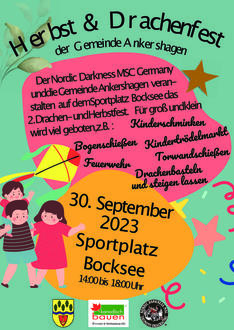 Genießen Sie einen herbstlichen Tag voller Freude, Gemeinschaft und Unterhaltung beim 2. Herbst & Drachenfest. Kommen Sie am 30. September ab 14:00 Uhr vorbei und erleben Sie entspannte Stunden auf dem alten Sportplatz in Bocksee.