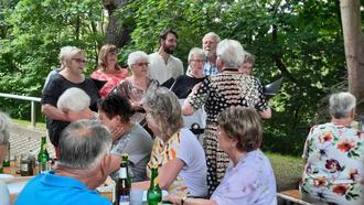 Am 18.06.2024 traf sich die Seniorengruppe des „Penzliner Kulturvereins“ bei strahlendem Sonnenschein zum Grillnachmittag und zum gemeinsamen Singen mit dem Chor aus Mölln auf der Neuen Burg in Penzlin: