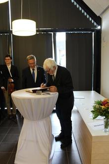 Nach Worten der Dankbarkeit, Wertschätzung und Reminiszenz an die gemeinsamen Erfolge, geschichtlichen Höhepunkte trug sich Herr Feldmann, liebevoll auch "Feldi" genannt, umringt von zahlreichen Weggefährten, lieben Freunden aus Otterndorf und Penzlin, Vertretern der Politik der Partnerstädte, dem Bürgermeister der Stadt Otterndorf Claus Johannßen, dem Mitglied des Rates der Stadt Otterndorf Thomas Bullwinkel und lieben Familienangehörigen in das Goldene Buch der Stadt Penzlin ein.