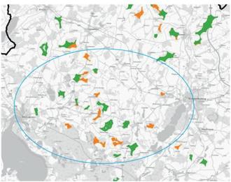 Grün - Vorrangflächen. Orange - Vorbehaltsflächen