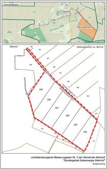 Die Gemeindevertretung der Gemeinde Altenhof hat am 14.12.2022 in öffentlicher Sitzung die Aufstellung des vorhabenbezogenen Bebauungsplanes Nr. 03 „Sondergebiet Solarenergie Altenhof“ beschlossen. Der räumliche Geltungsbereich des Bebauungsplanes befindet sich südöstlich der Ortslage Altenhof und ist im beiliegenden Übersichtsplan durch eine rot gestrichelte Linie umgrenzt.