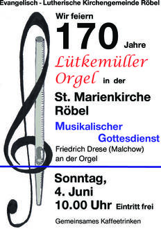 | So. | 04.06. | 10:00 | Musikalischer Gottesdienst: „170 Jahre Lütkemüller-Orgel“, im Anschluss Kaffee und Kuchen; St. Marien |