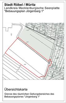 Die Stadtvertretung der Stadt Röbel/Müritz hat in der Sitzung am 04.06.2024 die Aufstellung des Bebauungsplans „Jörgenbarg 1“ beschlossen. Der räumliche Geltungsbereich des Bebauungsplans ist in der Übersichtskarte dargestellt.