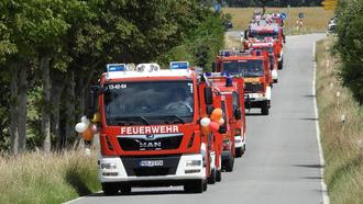 Der Wettergott hatte ein Einsehen und stellte am Freitagabend den Regen ab, so dass die Kameradinnen und Kameraden am Samstag alles vorbereiten und aufbauen konnten. Der Korso der Einsatzfahrzeuge der Sietower Feuerwehr und mehrerer anderer Feuerwehren des Amtsbereiches Röbel-Müritz bewegte sich durch die Ortsteile Sietow, Sietow Dorf, Zierzow und machte noch einen Schlenker über Groß Kelle ehe es über Hinrichsberg wieder zurück zum Standort der Sietower Feuerwehr ging.