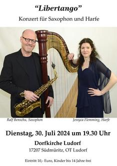 | Di. | 30.07. | 19:30 | Konzert für Saxophon & Harfe; Dorfkirche Ludorf |