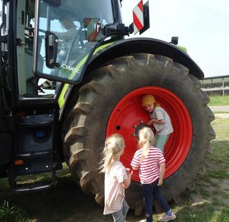Die Kinder konnten ihr bereits erworbenes Wissen gut miteinbringen. Anschließend wurde uns die Funktionsweise der Biogasanlagen erklärt. Auf einem Rundgang über das Betriebsgelände konnten wir uns die Rinder und die Maschinen anschauen. Der Höhepunkt für alle Kinder war der riesengroße Traktor, den die Kinder von außen und innen ausgiebig betrachten und erkunden durften. Das war ein sehr lehrreicher Vormittag für die Kinder der Vorschulgruppe in der Stotz Agrartechnik GmbH in Altenhof.