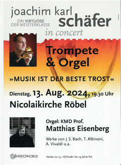 Ein Trompeten- und Orgelkonzert mit Joachim Karl Schäfer und Prof. Matthias Eisenberg ist am Dienstag, 13. August, um 19.30 Uhr in der Nicolaikirche Röbel zu hören.