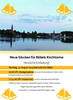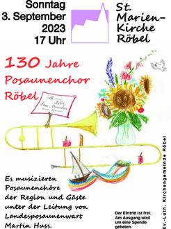 | So. | 03.09. | 17:00 | musikalischer Gottesdienst: 130 Jahre Posaunenchor Röbel und Danke-Fest, Posaunenchöre der Region unter der Leitung von Landesposaunenwart Martin Huss; St. Marien |