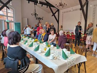 Die Besucherinnen und Besucher bestaunten den großartig restaurierten Saal mit aufgearbeiteten Balken und das frisch renovierte Hinterhaus mit weiteren Räumlichkeiten wie Versammlungsraum, Teeküche und auch die neuen Sanitäranlagen im Dorfkrug. Eine Tourist-Information und das Büro der Bürgermeisterin konnten in der oberen Etage besichtigt werden. Bei musikalischer Untermalung wurde anschließend im großen hellen Saal bei Kaffee und Kuchen, gebacken von den Frauen der Gemeinde, geklönt und gefeiert.