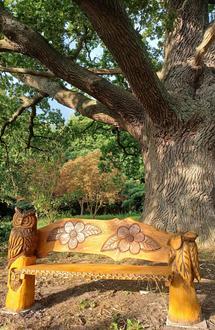 Die sogenannte „Eulenbank“ steht direkt unter der beeindruckenden, unter Naturschutz stehenden Altenhofer Eiche – einem Wahrzeichen des Ortes. Sie wurde an den passenden Standort gesetzt, denn dort wurde schon oftmals ein Waldkauz gesichtet. Die zweite Sitzgelegenheit, liebevoll „Hexenbank“ genannt, wurde passend zum Hexenhäuschen gestaltet. Nun begrüßt die Hexe Babajaga jeden Parkbesucher und lädt ebenso zum Verweilen ein.