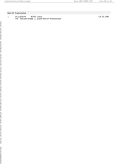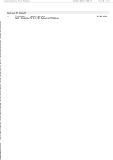 | Frau Hettwer, Marlies | am 24.10. | 74. Geburtstag |