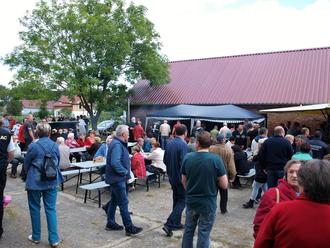 So war es ein schönes Bild am 23. September, als sich das Gelände nach dem Umzug schnell mit Besuchern füllte. Ein Festzelt stand bereit, die Gäste aufzunehmen und dem Programm die entsprechende Aufmerksamkeit zu schenken. Dazu standen Kaffee und Kuchen bereit zum Verzehr. Hier hatten sich viele, nicht nur aus Gaarz, mit Kuchenspenden eingebracht. Dafür noch ein Dankeschön, auch an die, die sich um den Verkauf bemühten.