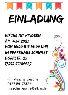 | Sa. | 14.10. | 10:00 | Kirche mit Kindern; Pfarrhaus Schwarz |