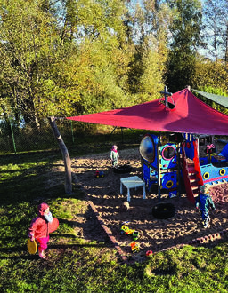 Das alte Gestell samt Sonnensegel war in die Jahre gekommen und musste ersetzt werden. Die Umsetzung dieses Projektes war für unsere kleine Kita nicht ganz einfach. Die Planung, das Sammeln von Spenden und die Ausführung kosteten uns einige Zeit und Mühen. Umso mehr freuen wir uns, dass das Ergebnis so schön geworden ist. Jetzt können die Kinder wieder vor den Sonnenstrahlen geschützt in ihrem geliebten Sandkasten mit Piratenschiff und Rutsche spielen. Der nächste Sommer kann kommen!